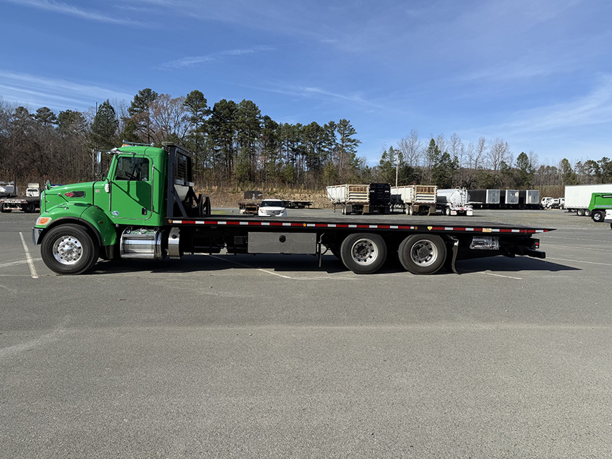 2019 Peterbilt 348 28′ Century Rollback Paccar PX9 350 HP Allison 3000RDS-P Automatic Transmission 20000# Front 40000# Rear 60000# GVWR P/S A/C Tilt Steering Power Windows Wood Floor (2) Storage Boxes 30000# Bed Rating Remote 20000# Hydraulic Winch 70 Gallon Aluminum Tank.