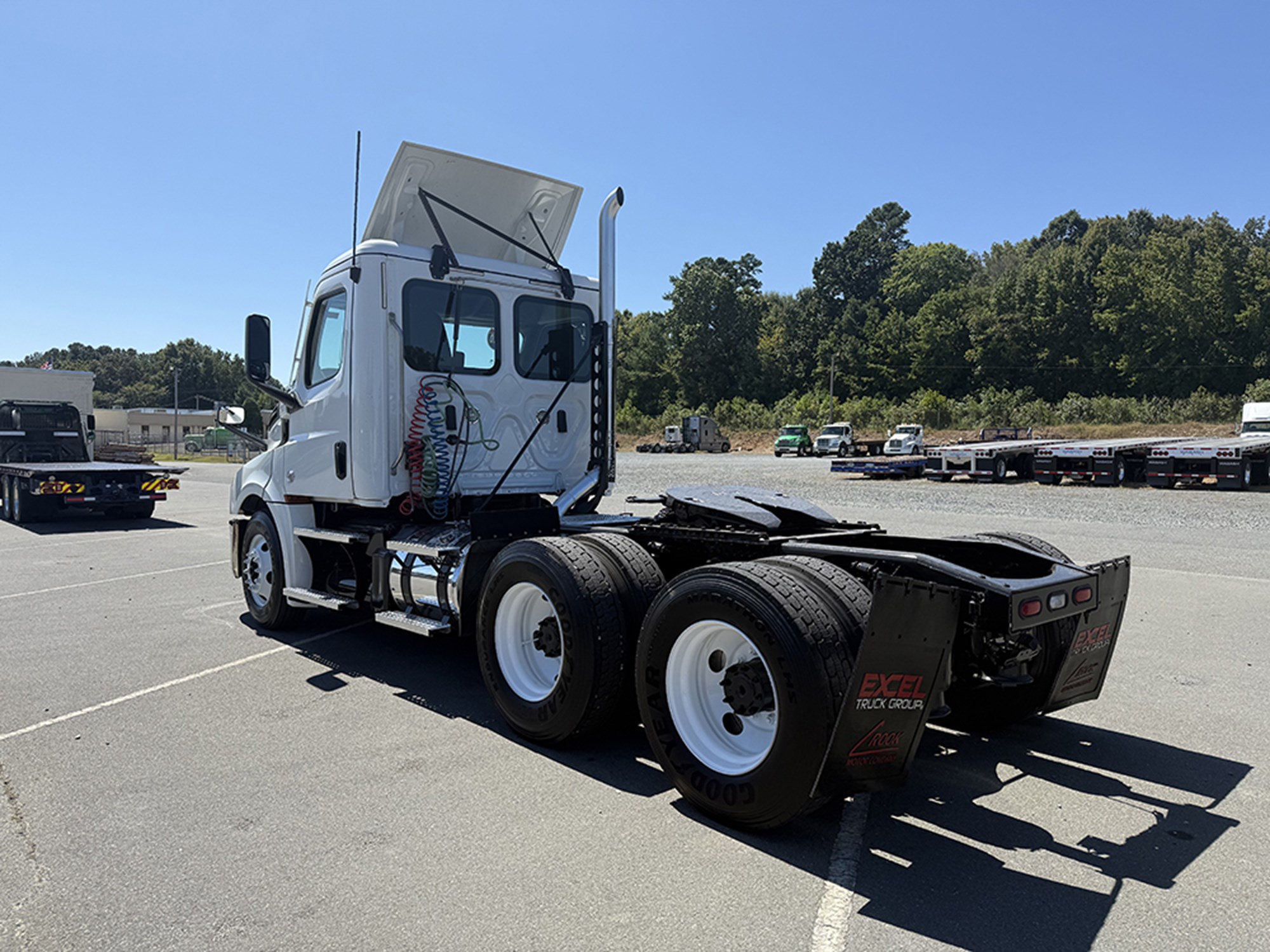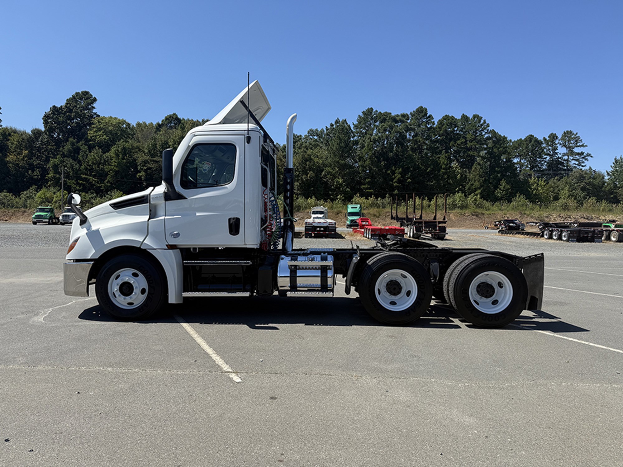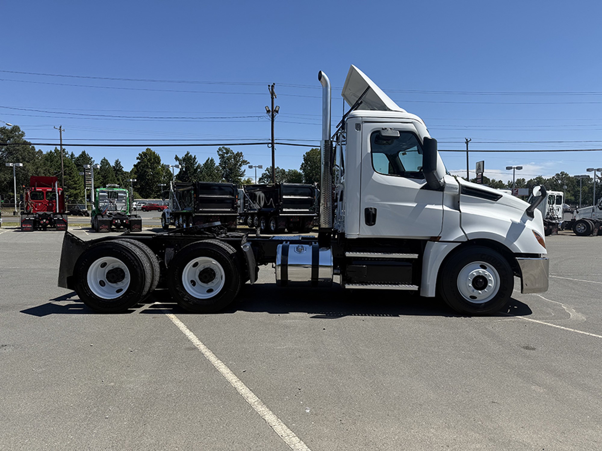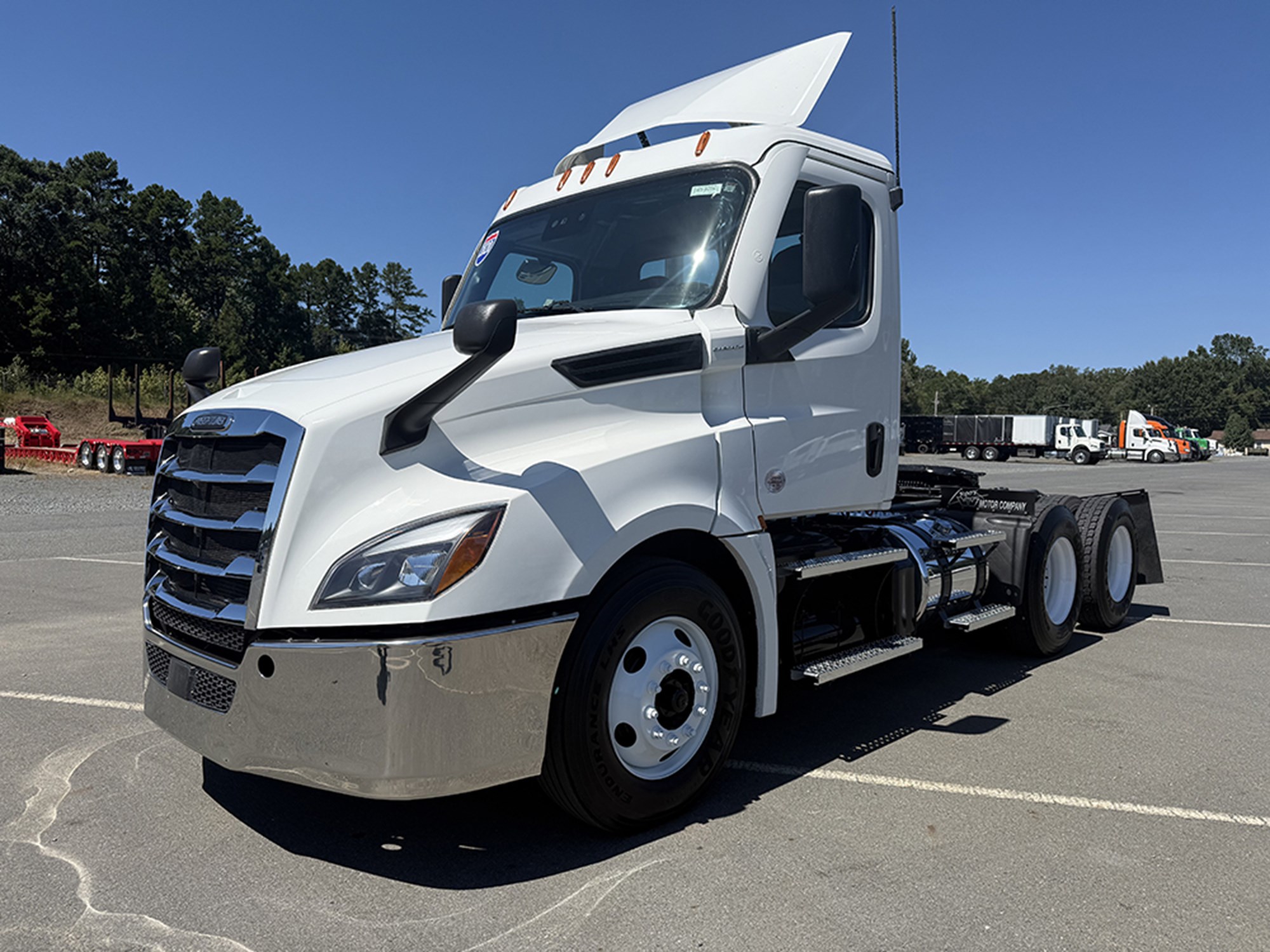 2020 Freighltiner Cascadia 126 Tandem Axle Day Cab Detroit DD13 450 HP DT12 Automatic Transmission 12000# Front 40000# Rear 52000# GVWR P/S A/C Power Windows and Mirrors Heated Mirrors Tilt Steering Top Shield Dual 70 Gallon Aluminum Tanks.