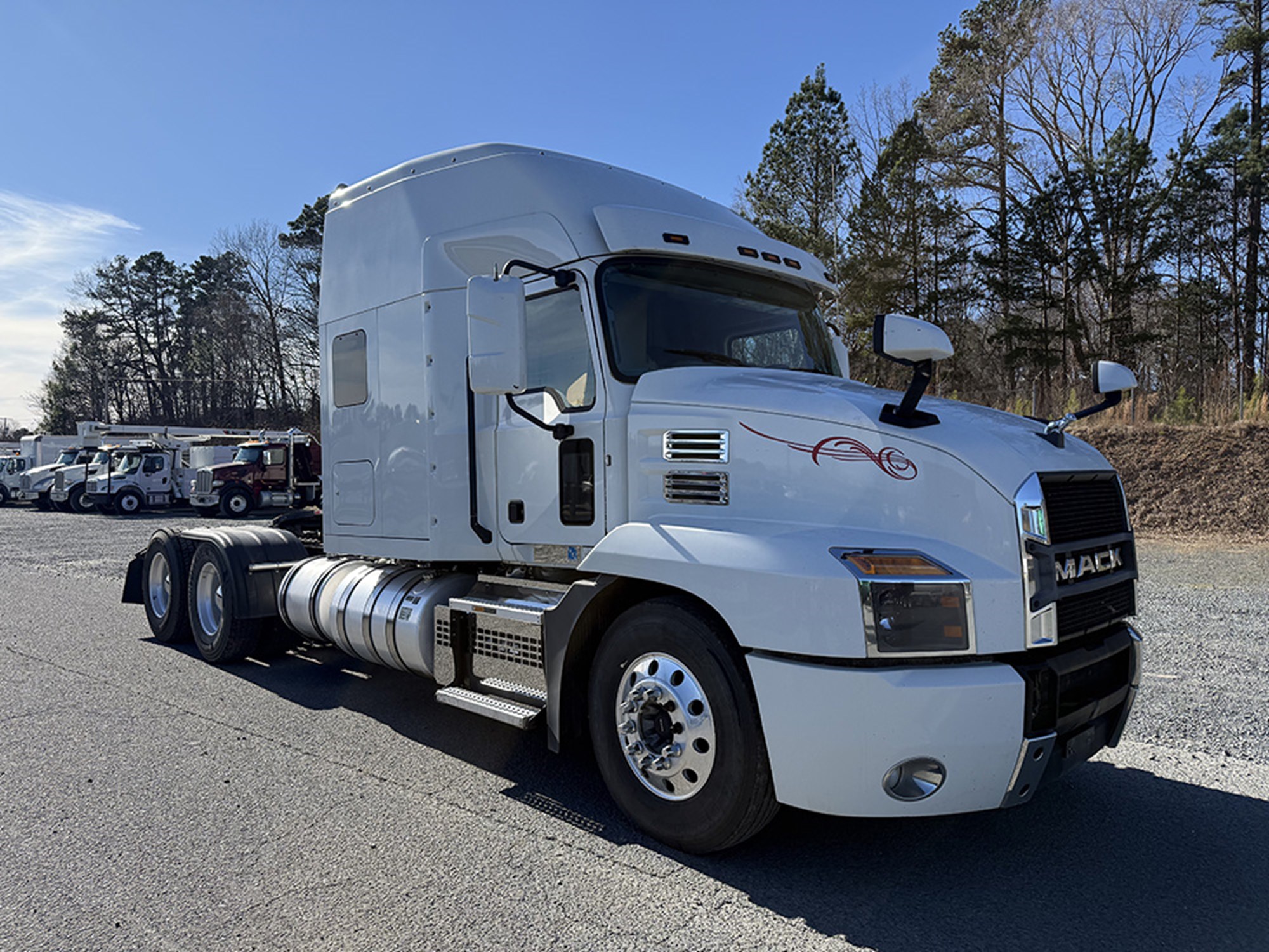 2020 Mack AN64T Tandem Axle Sleeper Mack MP8 445 HP M-Drive Automatic Transmission 12500# Front 40000# Rear 52500# GWVR P/S A/C Single Line Wet Kit 50 Gallon Aluminum Hydraulic Tank on Frame Poly Half Fenders Dual Aluminum Tanks. Ask About Our Warranty and Finance Options!