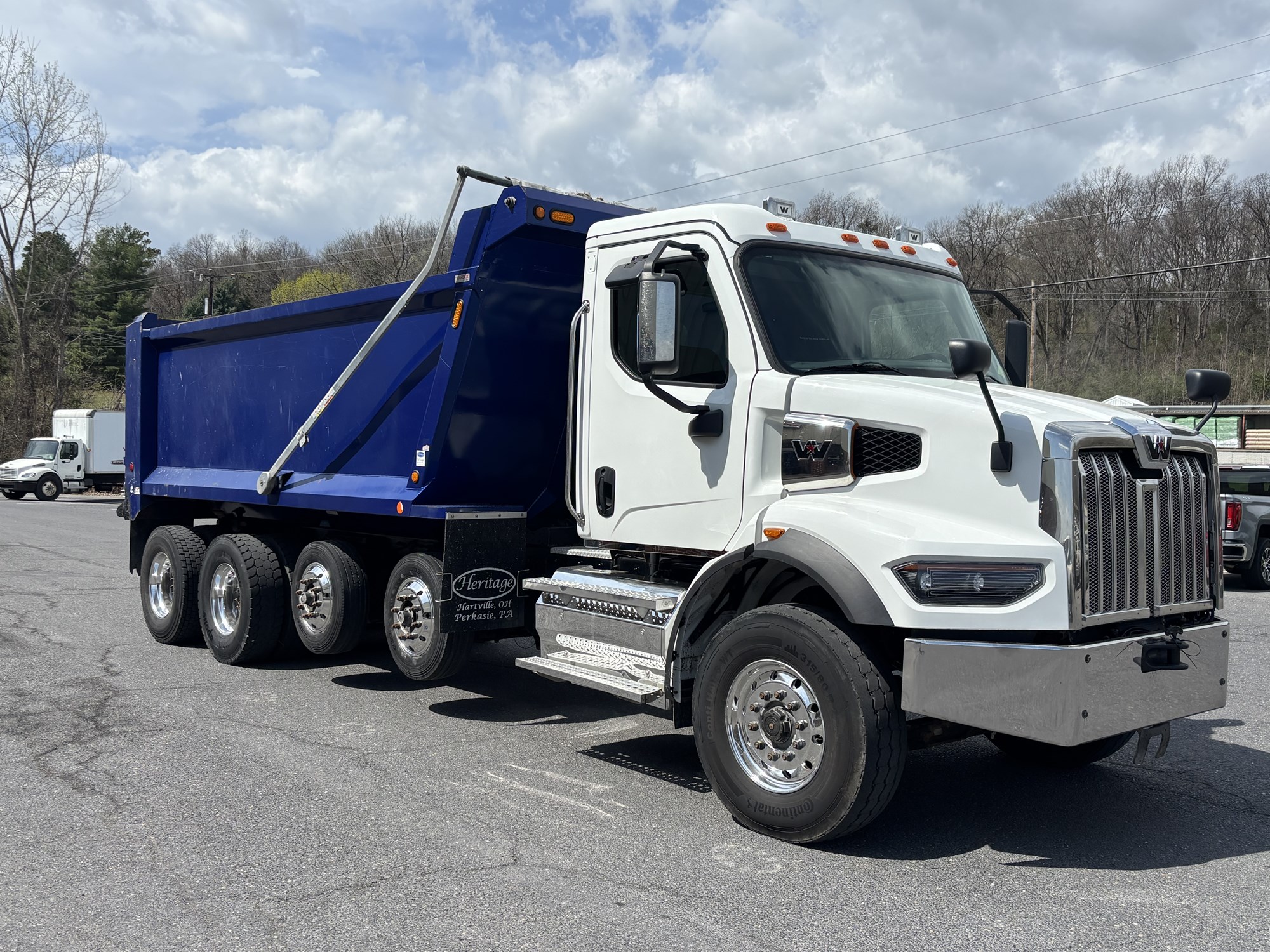 2024 Western Star 47X 19′ Quad Axle Heritage Dump Cummins X12 475 HP Allison 4500RDS Automatic Transmission 18000# Front 46000# Rear (2) 9880# Steerable Lift Axles 83760# GVWR P/S A/C Power Windows and Locks Tilt Wheel Air Ride Driver Seat Interaxle and Diff Lock Asphalt Taper 80 Gallon Aluminum Tank Cummins Warranty Until 7/31/29. Ask About Our Warranty and Finance Options!